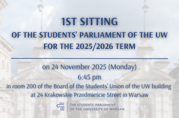 1st sitting of the Students’ Parliament of the UW for the 2025/2026 term
